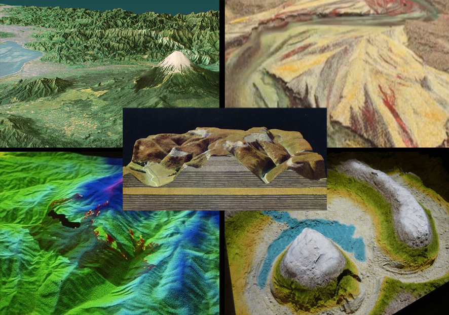 …the book which I now appreciate fired my fascination with geology was The Earth’s Crust—A New Approach to Physical Geography and Geology. Published in 1951, it was called “a new approach” because Dudley Stamp commissioned huge, detailed models of different landscapes—and what lies beneath them—to be made in exquisite detail by Tom Bayley, a lecturer in sculpture, and photographed in colour for the book.