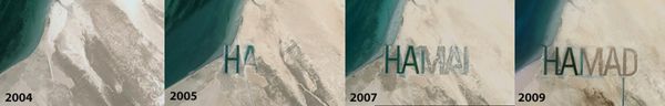 with letters so big they can be seen from space. The word âHAMADâ measures