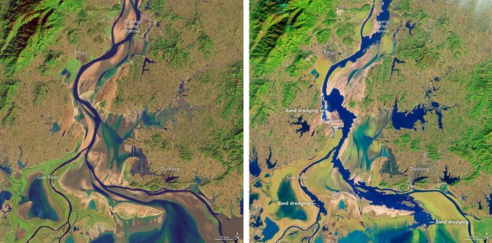 It just doesn't stop, and the scale of the damage to communities and the environment is staggering. NASA recently released the pair of images, above, showing changes to the sediment system of Poyang Lake and its rivers. The lake, these...