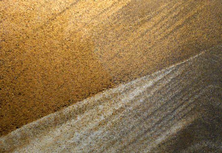 This is exactly what was happening 200 million years ago in Ron Schott’s Navajo Sandstones: successive avalanches of sand carving away at the pre-existing surfaces of the dunes, piling up new layers at a different angle to the older ones, cross-bedding in action.