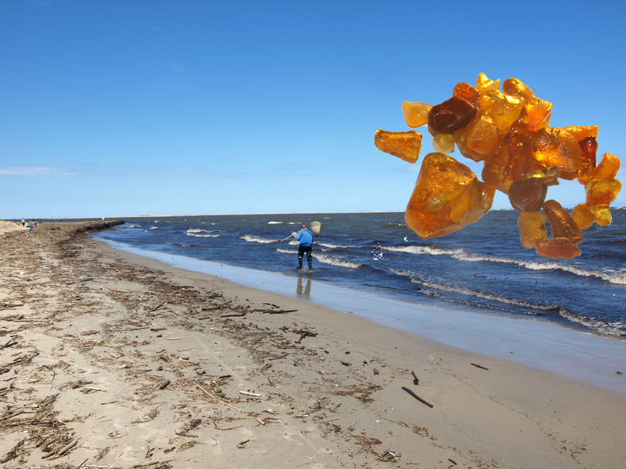 You start collecting one after another and cannot move a meter because there are so many of them. The most interesting for me was that if you want to find a bigger piece, you should check the wooden sticks washed ashore. Why? It turns out that amber is as light as wood and they flow together in the water.