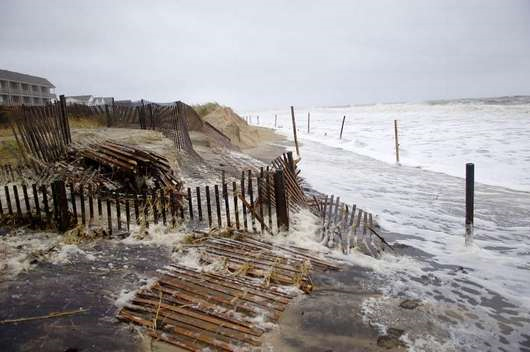 “In Delaware, tides washed out dunes, leaving several feet of water and 3 feet of sand along state Route 1. Transportation officials say it may take two days to clear the sand.”