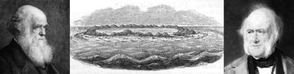 The two men were to collaborate on the successive editions of Lyell’s Principles; the index of my own edition, the ninth, published in 1853, contains nineteen references to “Darwin, Mr. C.”, ranging from “on vegetation required for support of large quadrupeds” to “on extinction of animals,” via earthquakes, South American drought, “oolitic travertin,” and, of course, coral islands. The book contains several pages on the last topic, essentially all describing Darwin’s work and quoting him directly. In 1837, Lyell had written to Darwin: