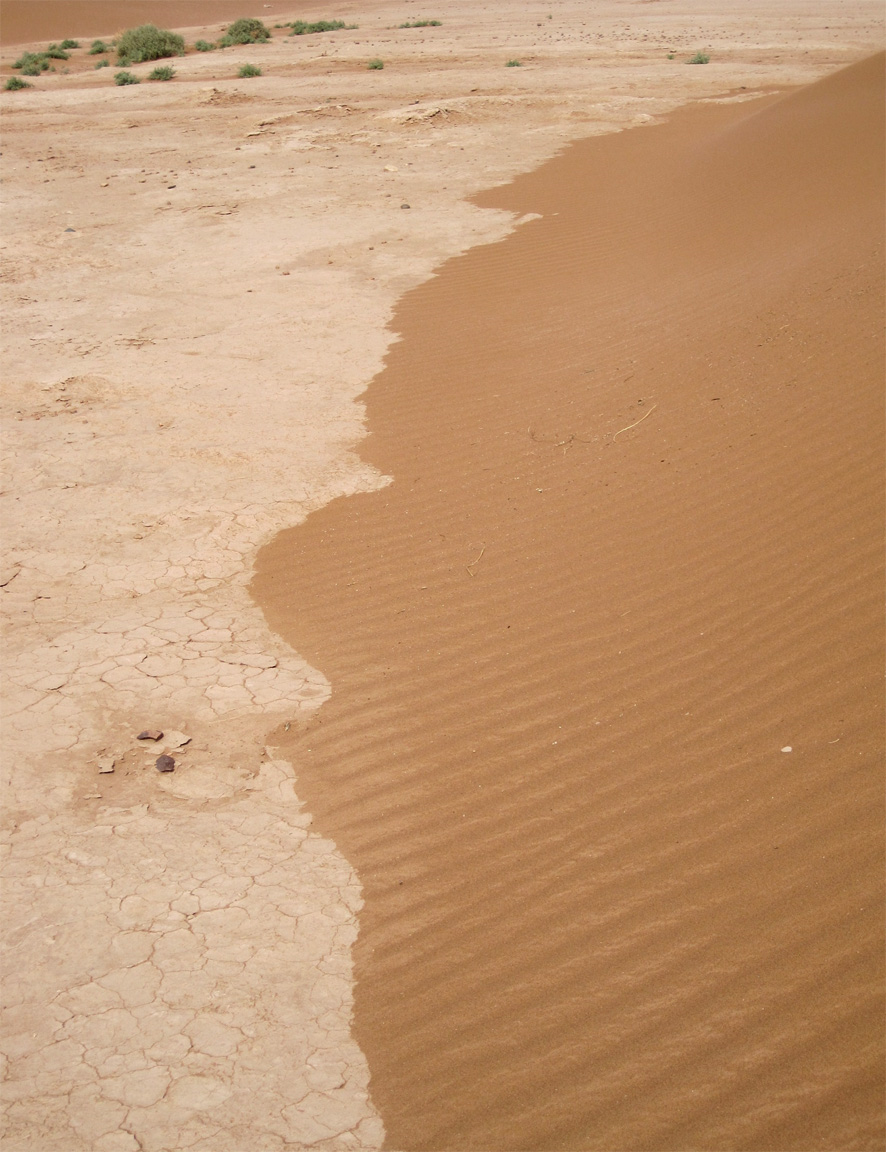 At the edge of the Sahara, I stood for a while and watched a dune move. It pushed out its toes, testing the flat ground in front of it; a small trickle of sand cascaded down the lee side and staked a claim, a first footstep of a few millimetres, across the stony flat.