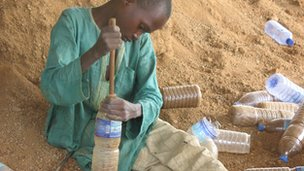 Nigeria’s first house built from discarded plastic bottles is proving a tourist attraction in the village of Yelwa. Hundreds of people - including government officials and traditional leaders - have been coming to see how the walls are built in the round architectural shape popular in northern Nigeria.The bottles, packed with sand, are placed on their side, one on top of the other and bound together with mud.