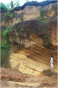level and expose them as sandstones in the river banks of eastern Java. They are on particularly fine display not far from the village of Ngrayong which gave its name to this particular pile of sedimentary archives. The grains of the Ngrayong sandstones are remarkably immature – they are sharp-edged and angular, their journey having been too short for any effective abrasion and rounding of those rough edges.