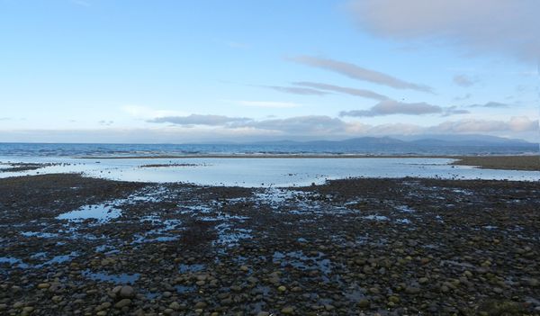 He looks out eastwards over the deliciously named Salish Sea to the hills of Lasqueti Island and the mainland, across a beach that is a broad bench, strewn with cobbles, pebbles, and gravel – between which can be found today’s Sunday Sand.