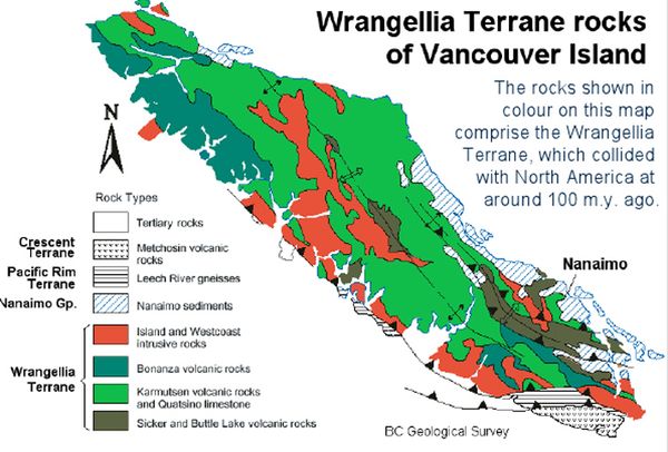 [Illustrations from Steven Earle’s The Geology of British Columbia and Vancouver Island – if you, like me, can’t get to the original, try the Google “quick view” version ; for more on Wrangellia, see this University of British Columbia site; and thanks, Brett, for the sand!]