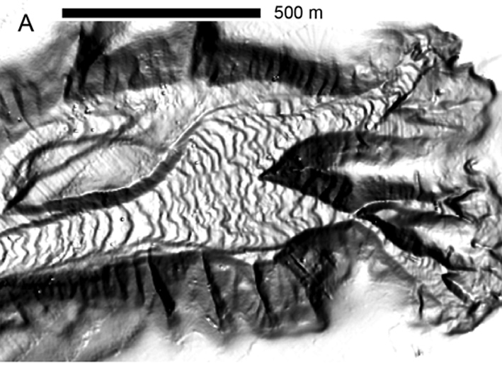 Perhaps most incredible is the detailed imagery generated by multibeam sonar that creates digital maps of the canyon system at high resolution. Below is one example, from Semiannual patterns of erosion and deposition in upper Monterey Canyon from serial multibeam bathymetry; it shows the upper canyon system in startling detail - the base of the canyon is marked by giant sand waves, several metres high and tens of metres in wavelength, formed by the immensely strong currents. This is one of a time-series of images that have enabled definition of changes day-to-day as avalanches scour the canyon walls, sediment gravity flows deposit sand banks and erode channels, sand waves move on, and meanders change their shape.