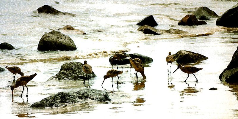The intertidal zone, their tweezer bills