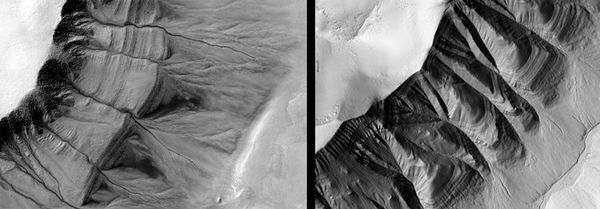 Sand, Mars, and a challenge to conventional wisdom. What better ingredients for a post could I wish for? The two images above show sedimentary fan deposits, the great - yes, fan-shaped – aprons of detritus that accumulate at the foot...